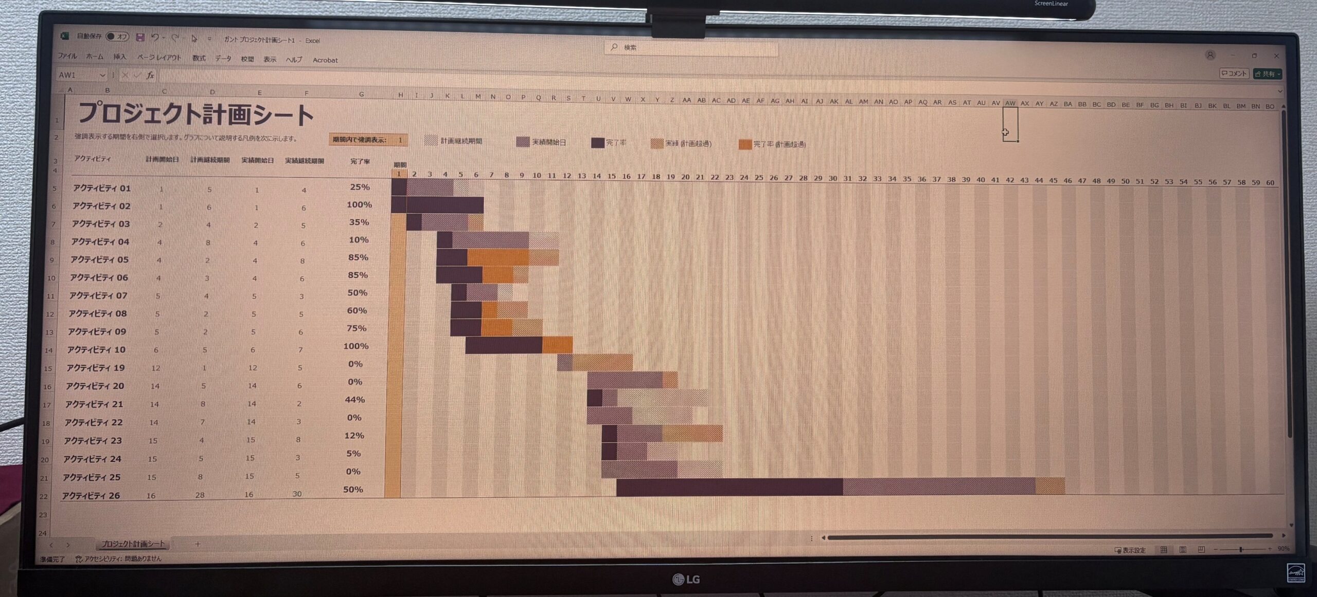 横長のガントチャートも端から端まで確認可能です!